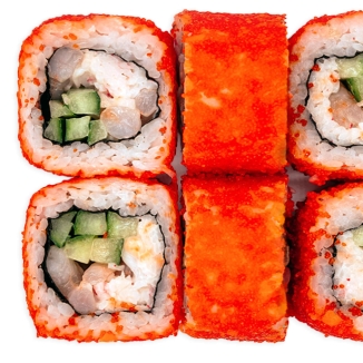рис, нори, креветки, краб снежный, майонез, огурец, тобико